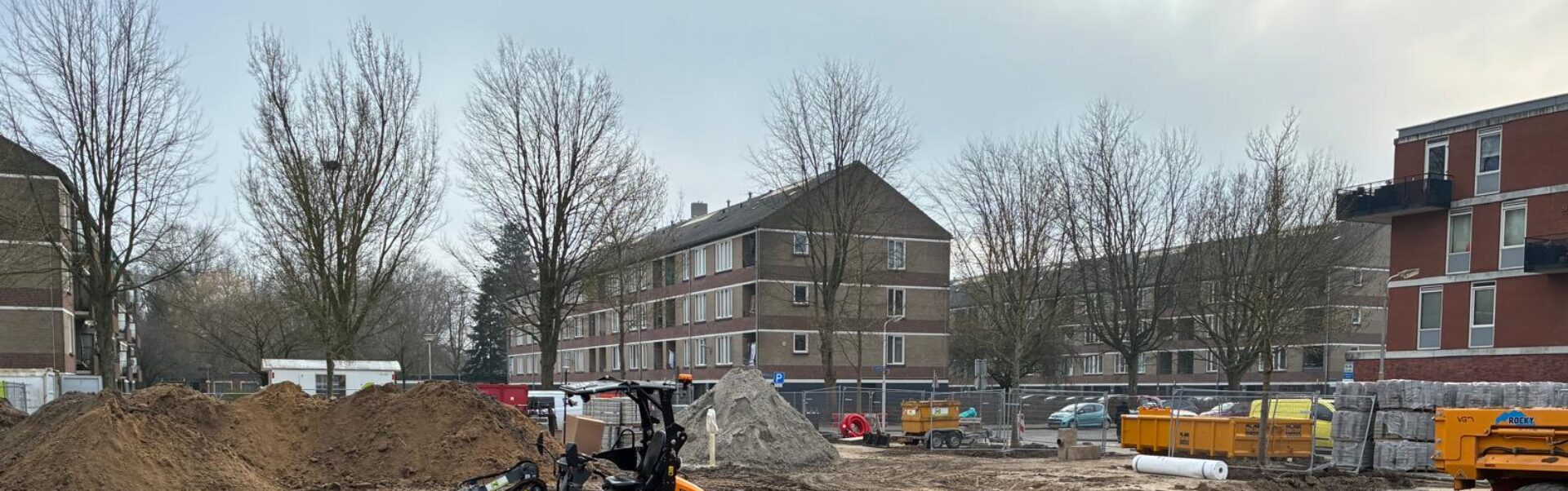 Van de Haar Groep is in Amersfoort gestart met de herinrichting van het Ariaplein. Nu nog een versteende vlakte tussen flats, straks een groen speelgebied voor kinderen en een ontmoetingsplek voor ouders.